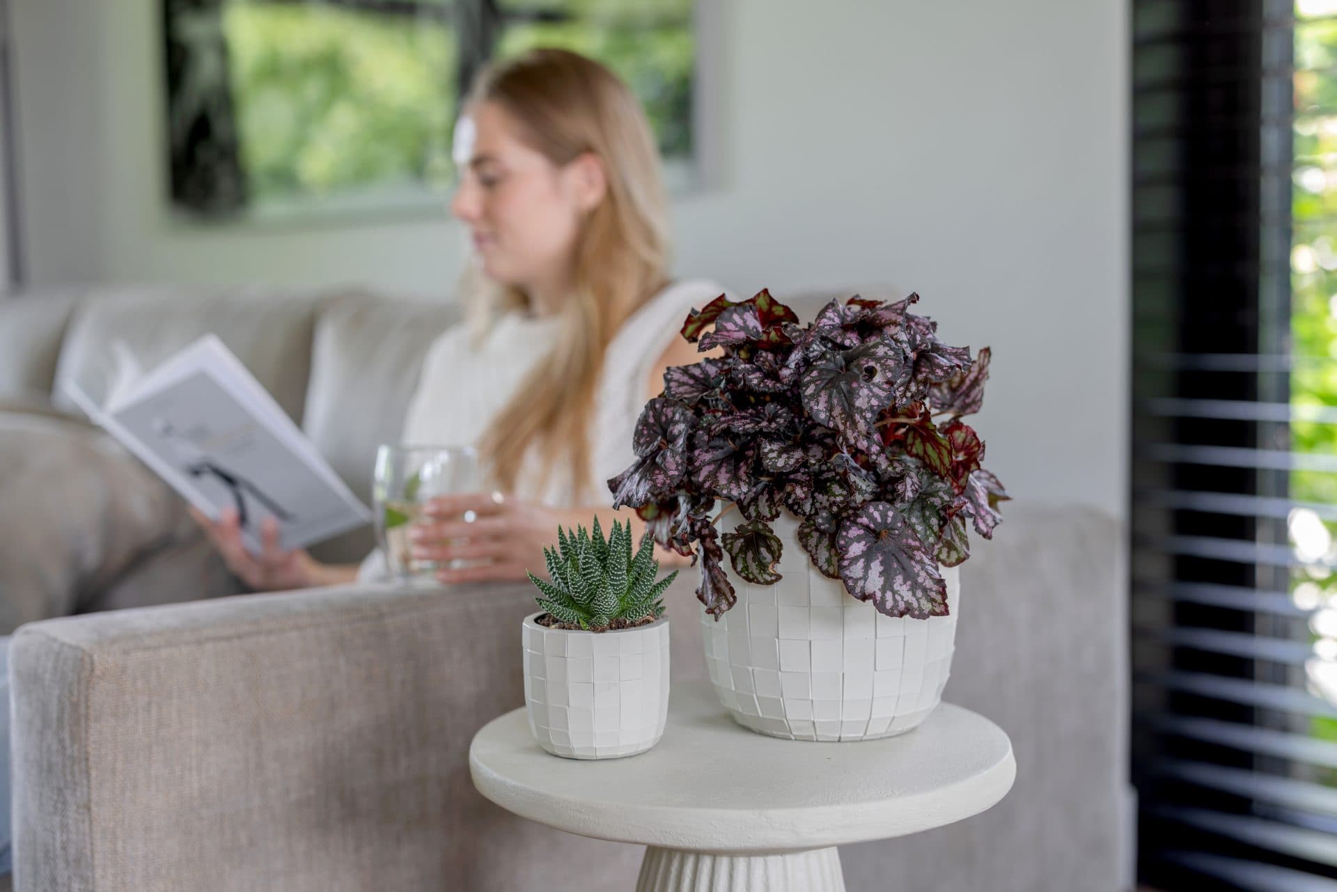 De indoor bloempotten hebben geen afwateringsgat, maar het kan zijn dat de pot niet 100% waterdicht is.