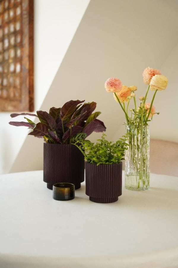 Binnen de collectie heb je de keuze uit drie verschillende modellen in verschillende maten, elk met opvallende groeven die textuur en visuele waarde toevoegen aan je interieur. Deze potten zijn niet alleen een praktische manier om je favoriete planten in te zetten, maar dienen ook als prachtige decoratieve accenten die de sfeer van elke kamer verbeteren.