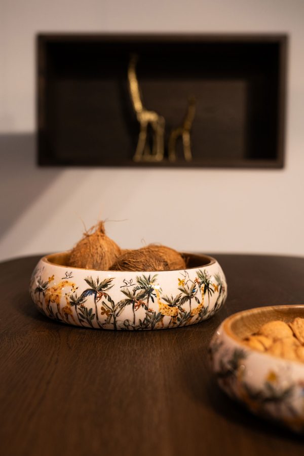 Laat u meenemen op een onvergetelijke reis door de pracht van de flora en fauna van de savanne, waar de natuur in al haar glorie tot leven komt. Ontdek de energie van uitgestrekte vlaktes tot weelderige, wilde bossen. Deze stijlvolle bowl is gemaakt van mangohout en heeft het exclusieve design van Designed by Lammie. De bowl is niet vaatwasser bestendig.
