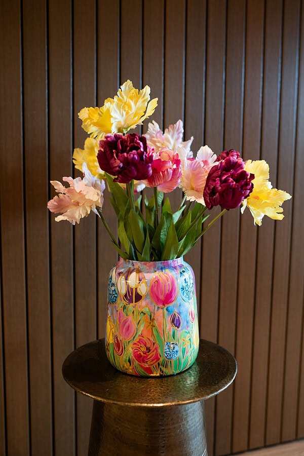 Tulpen zijn iconisch voor Nederland. Niet voor niets hebben wij deze prachtige serie de naam Dutch Beauty gegeven.Kunstenaar Rick Triest laat zich inspireren door de Gouden Eeuw, een tijd waarin de tulp immens populair was en werd gezien als een waardevol bezit. Dit gevoel van exclusiviteit en luxe sluit naadloos aan bij de verfijnde uitstraling van Designed by Rick Triest. Daarnaast draagt de Dutch Beauty bij aan het culturele aspect van de collectie. De pracht van Holland komt in alle producten naar voren. Producten die u in deze lijn kunt tegenkomen zijn tassen, sleutelhangers, mokken, onderzetters, waterflessen en meer!