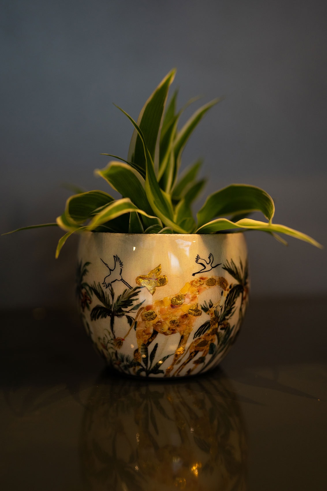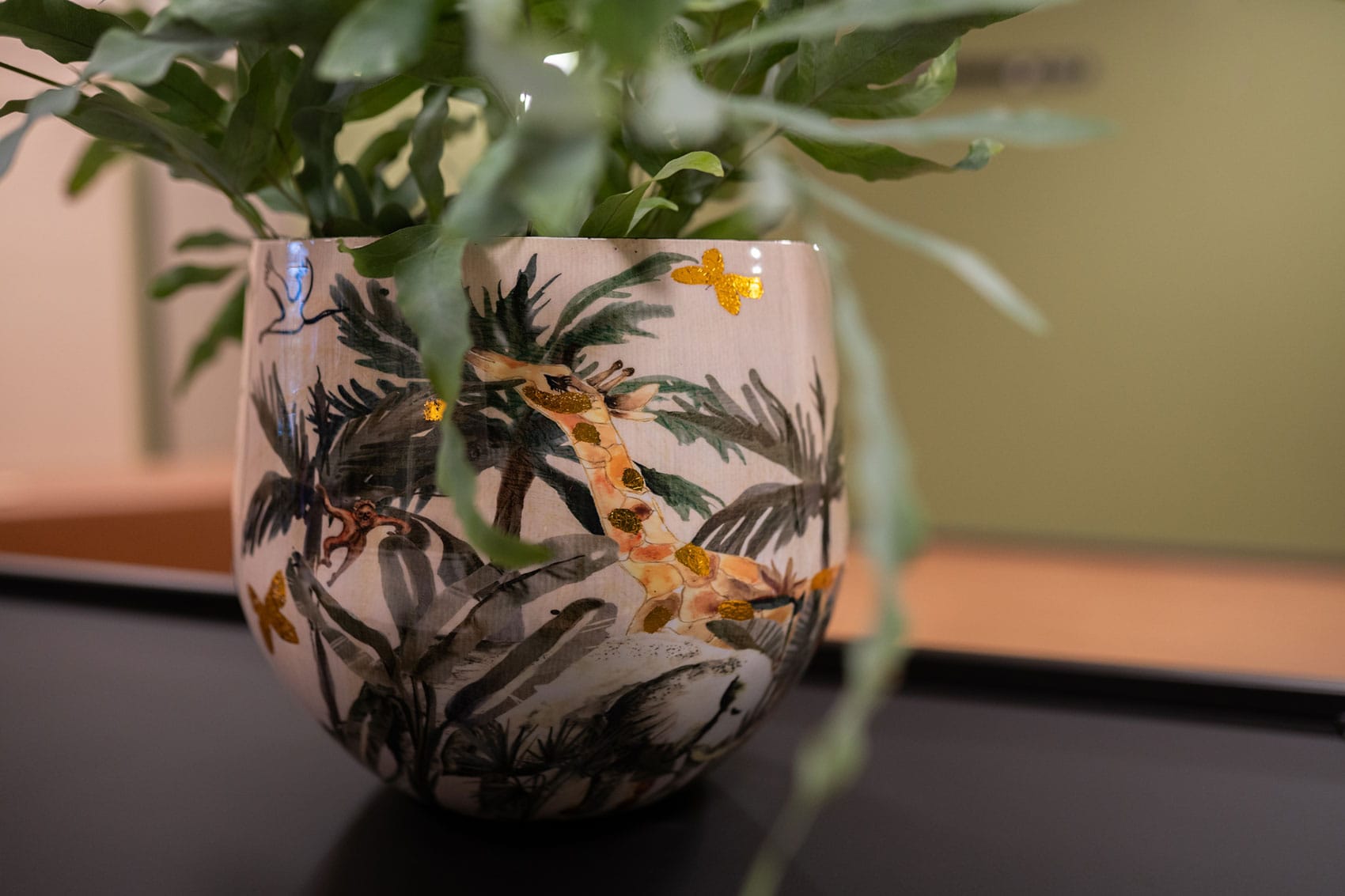 Laat u meenemen op een onvergetelijke reis door de pracht van de flora en fauna van de savanne, waar de natuur in al haar glorie tot leven komt. Ontdek de energie van uitgestrekte vlaktes tot weelderige, wilde bossen. Deze bloempot Safari Dream is gemaakt van hoogwaardig keramiek en komt uit de Designed by Lammie serie van TS Collection. De bloempot heeft een glanzende glazuurlaag voor een luxe finish.