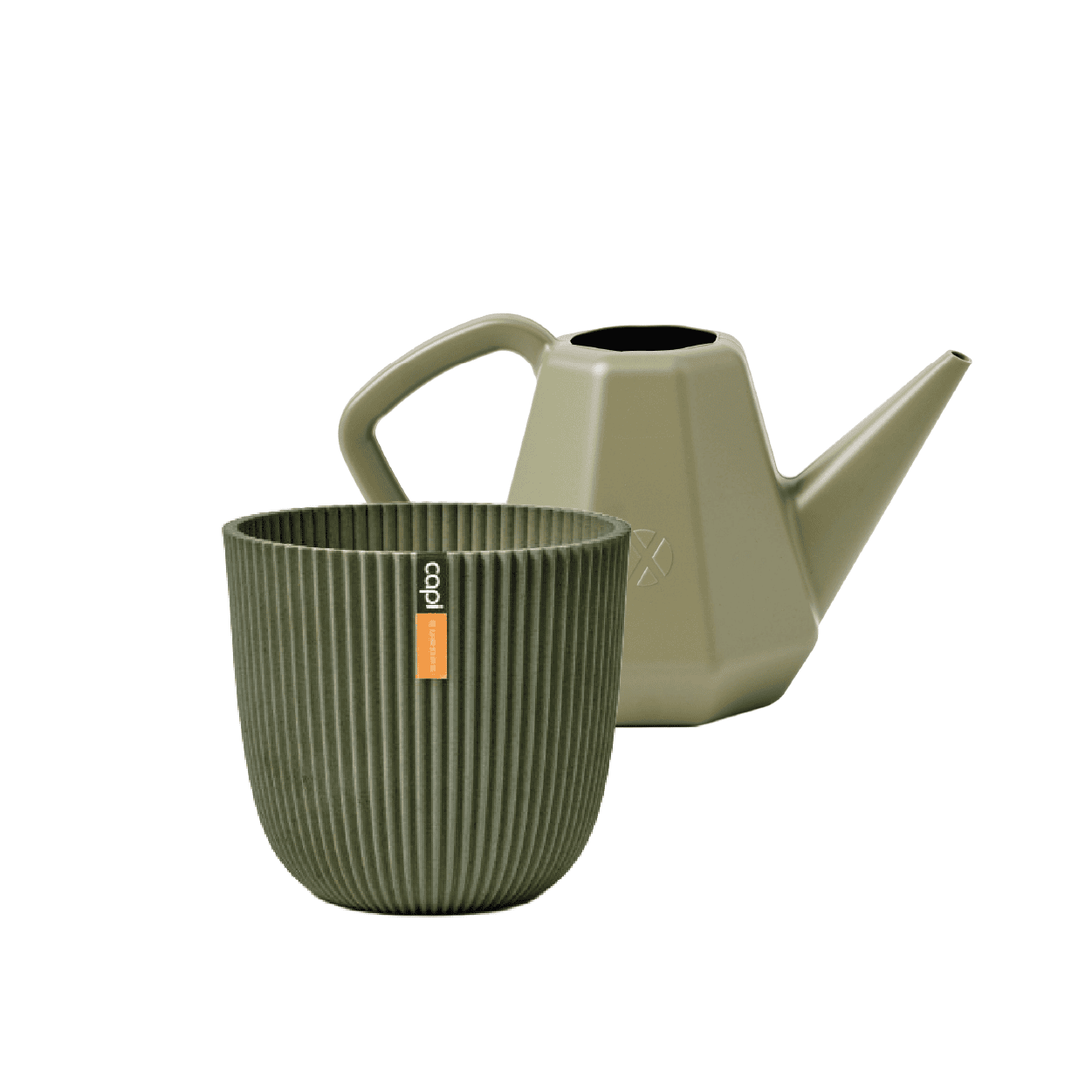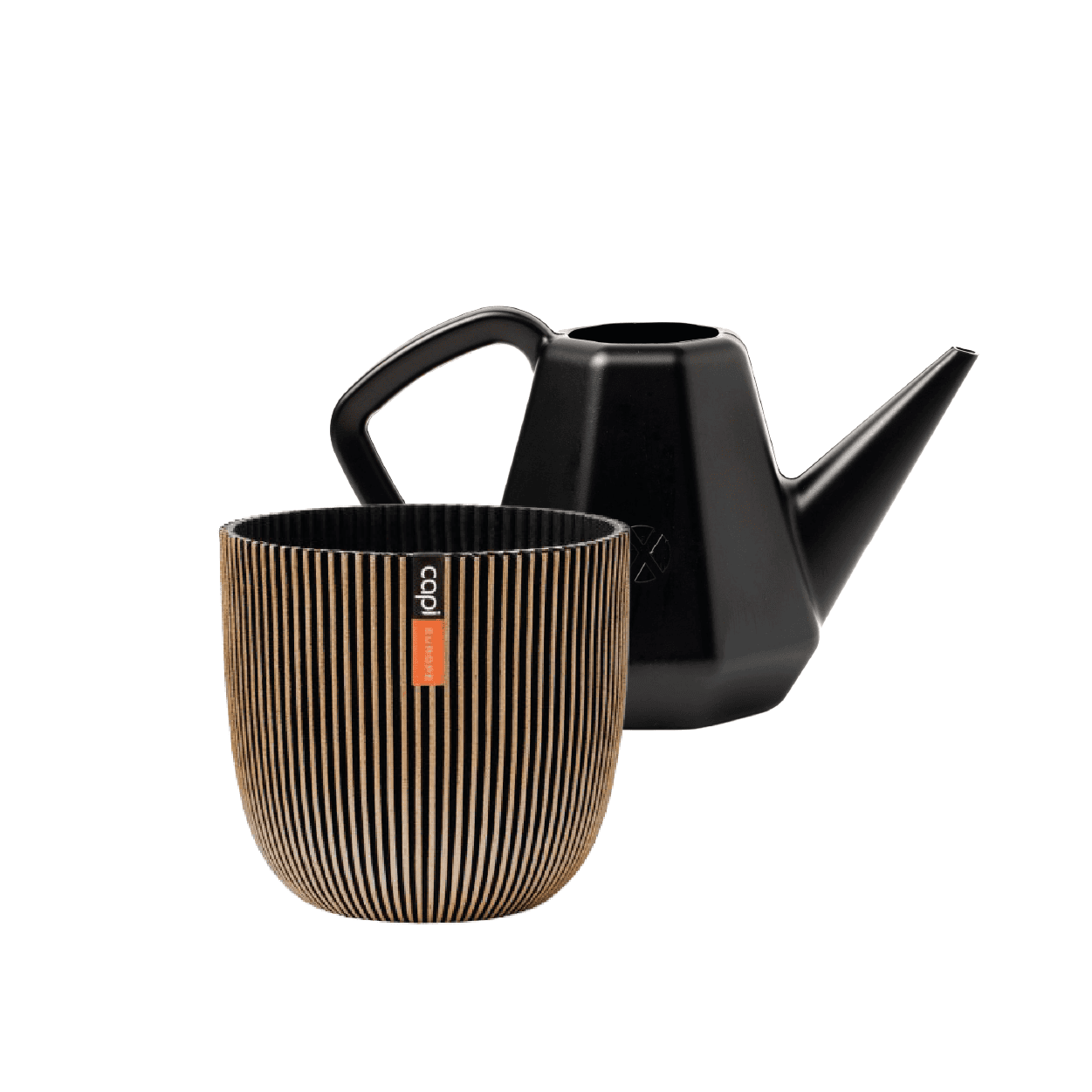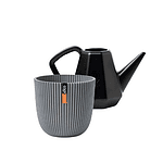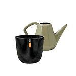 Deze set combineert de elegante, functionele Doppio Smooth 2L gietertje met de karaktervolle Pot Bol Groove ‘Made With’ bloempot. De Doppio Smooth is compact (2 L), handzaam en geschikt voor binnen én buiten een designobject dat tegelijk praktisch water geeft. De gieter is lichtgewicht, breukbestendig en wordt geleverd met een ruime garantie, waardoor hij lang meegaat.