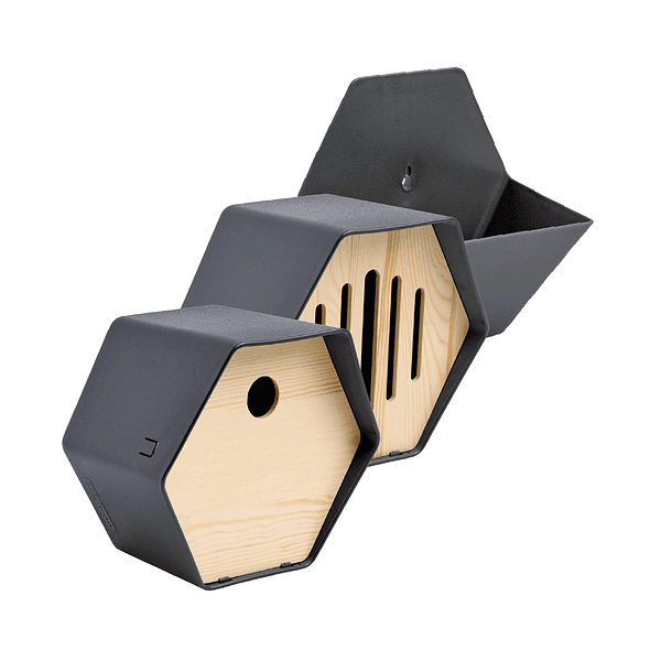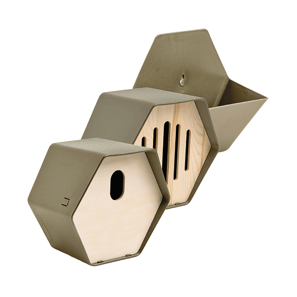 De Hive-elementen zijn gemaakt van 100% gerecycled en recyclebaar materiaal, en zijn ontworpen met oog voor zowel natuur als design. Dankzij de doordachte structuur biedt de set niet alleen beschutting aan insecten en vogels, maar brengt ze ook een modern accent in elke buitenruimte. De Cadeauset Hive 3x is meer dan een cadeau: het is een bijdrage aan een groenere wereld compact, duurzaam en verrassend mooi om te zien.